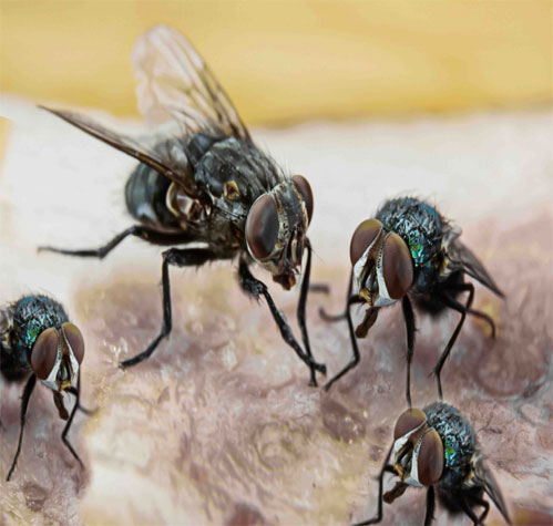 usually sugar-based and contain a compound that attracts the adult flies. Flies that feed on these baits are killed by the insecticide they digest. Many spray pyrethroid-based insecticides can suppress houseflies in and around homes.
